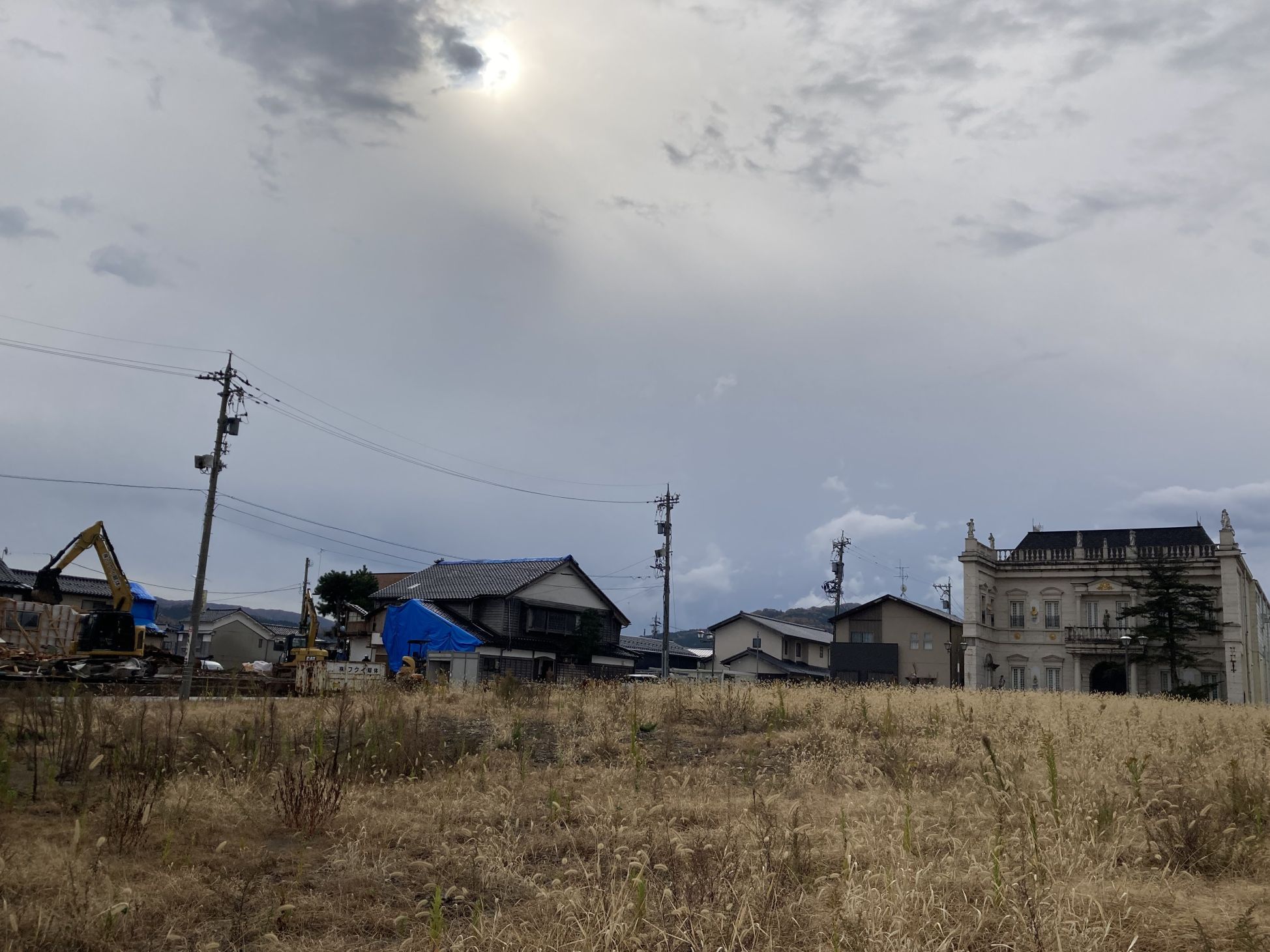壊れた建物が撤去された朝市通りには、雑草が生えていました。