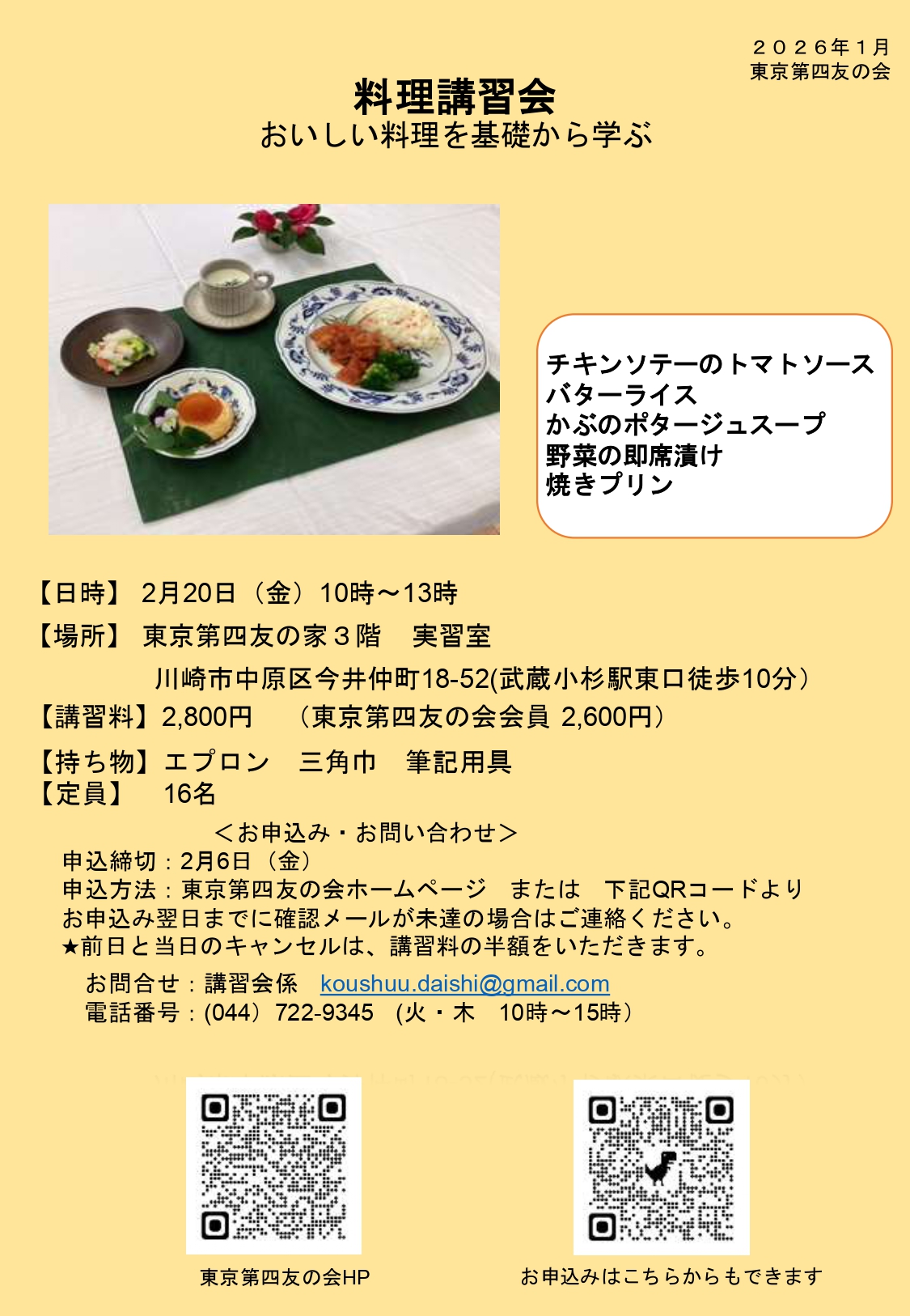 【持ち物】エプロン 三角巾 筆記用具
